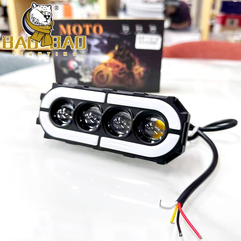 FRGB Branco Amarelo Flash 4 Olhos 4lentes Alumínio Multicolor Motocicleta Luz de nevoeiro LED